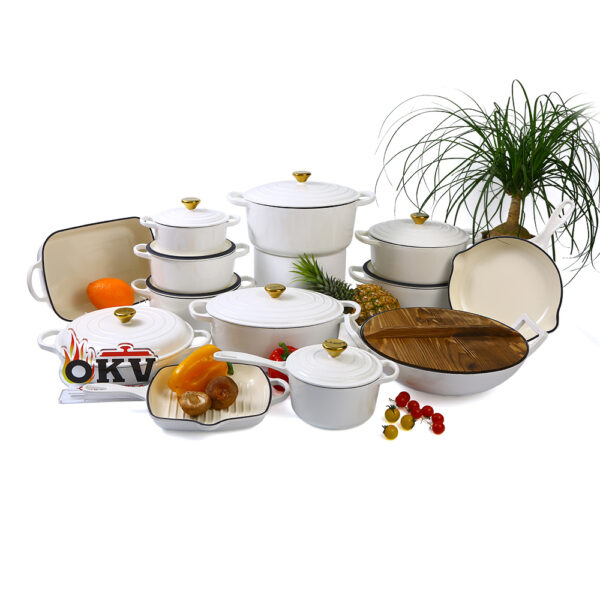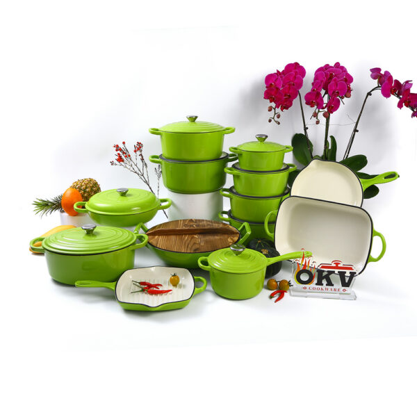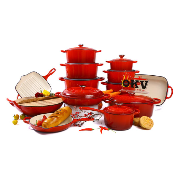 Transform your kitchen with the OKV 13-Piece Enameled Cast Iron Cookware Set, a premium collection designed for every recipe, every occasion, and every kind of cook. Featuring a wide variety of shapes and sizes, this all-in-one set equips you with everything you need to bake, braise, stew, fry, grill, roast, and more.
