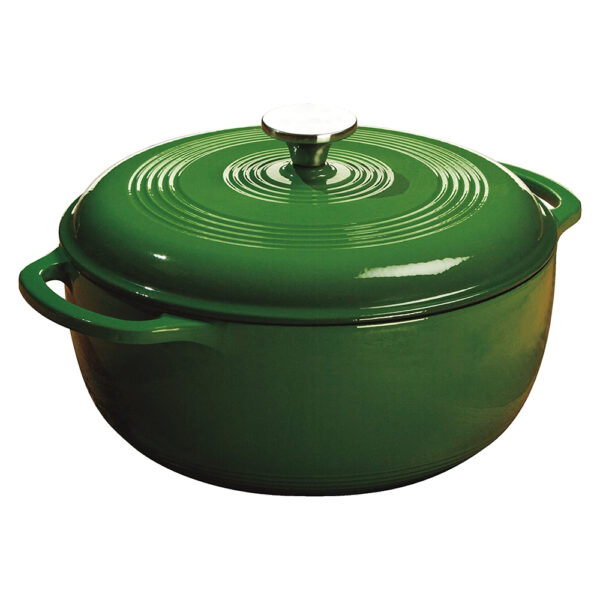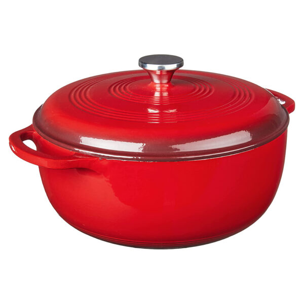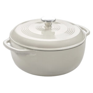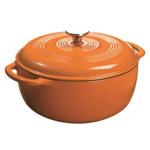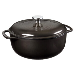 Crafted from heavy-duty cast iron and coated with a smooth enamel glaze, it offers even heat distribution and superior heat retention, while the non-reactive enamel interior resists sticking and makes cleanup easy. The tight-fitting lid locks in moisture and flavor, making this your go-to pot for one-pot meals, batch cooking, and weekend feasts.