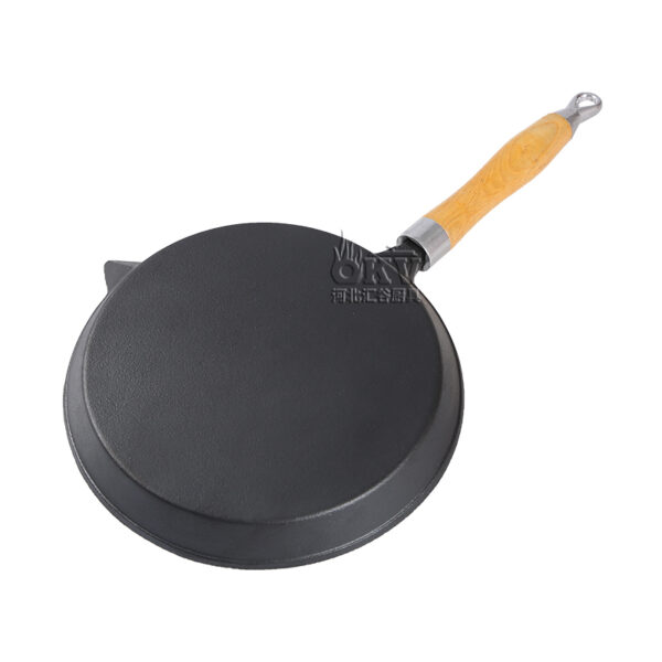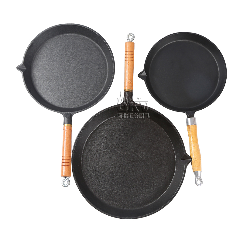 Each pan features a long ergonomic wooden handle that stays cool to the touch, providing a comfortable and secure grip for stovetop and open-flame cooking. The cast iron construction delivers superior heat retention and even heating, ensuring delicious results every time.