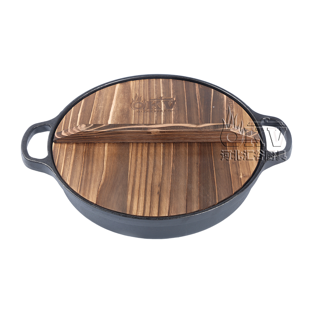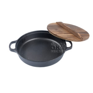 The matching wooden lid adds rustic charm while sealing in heat and flavor. Whether you’re searing, baking, or serving, this pan is perfect for stovetop-to-table cooking and is designed to impress in both performance and appearance.