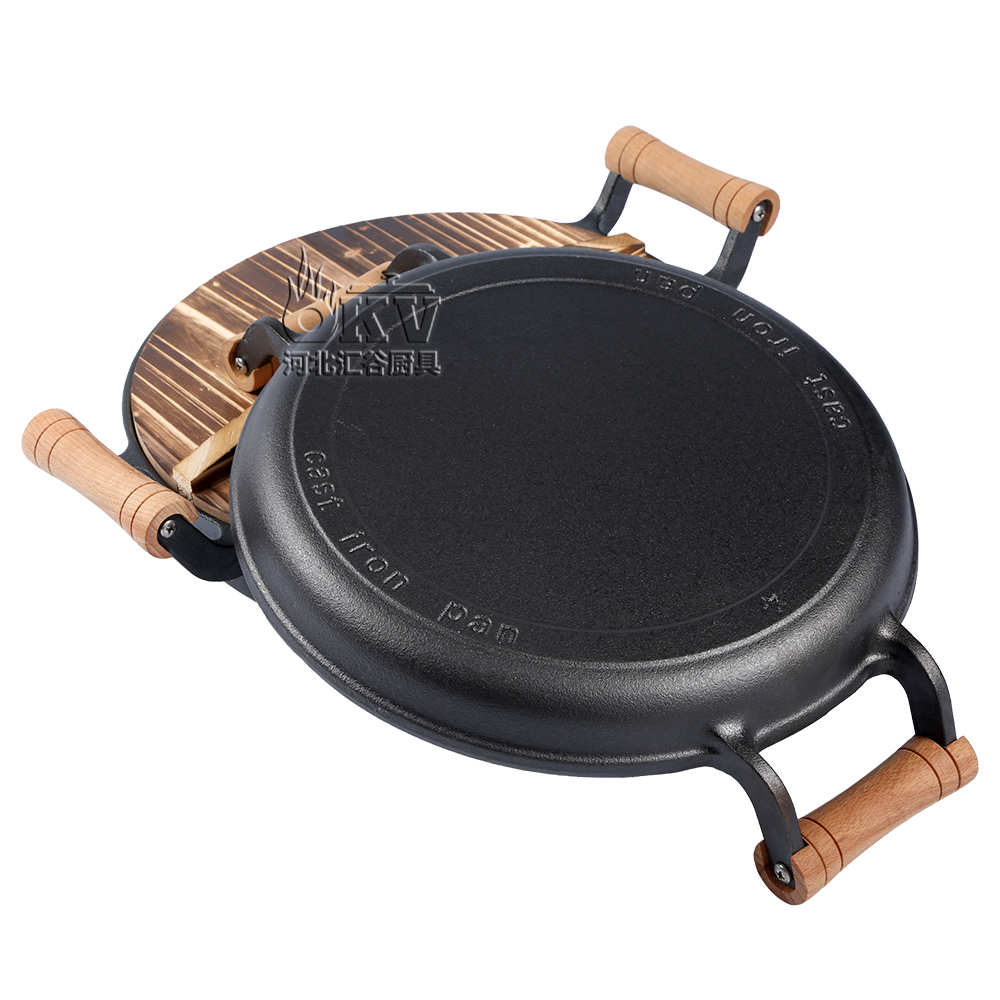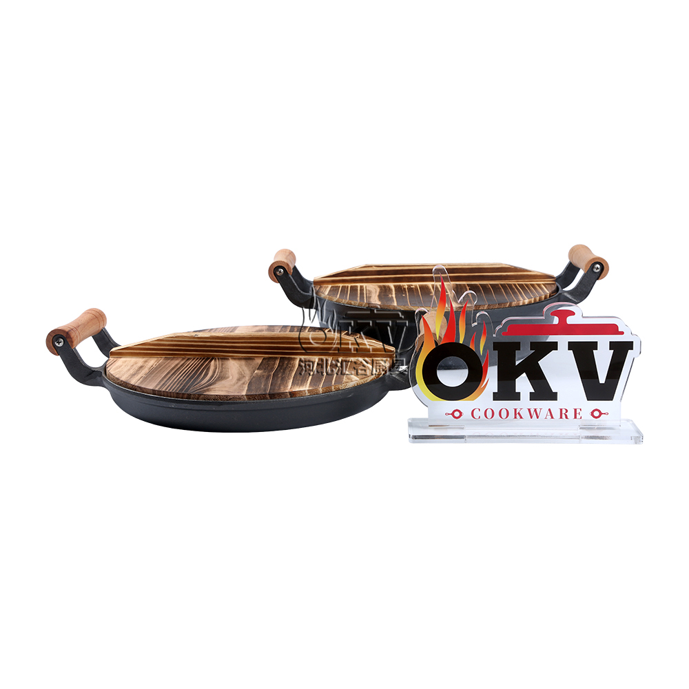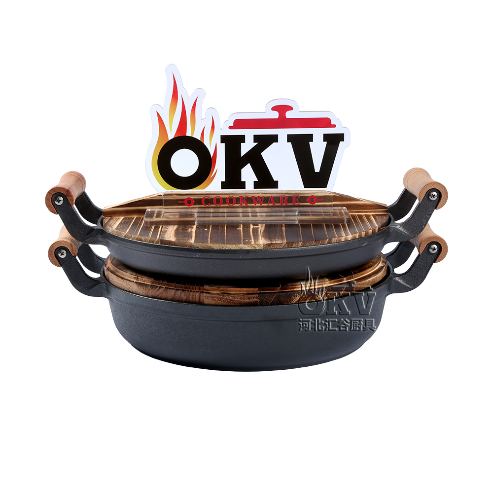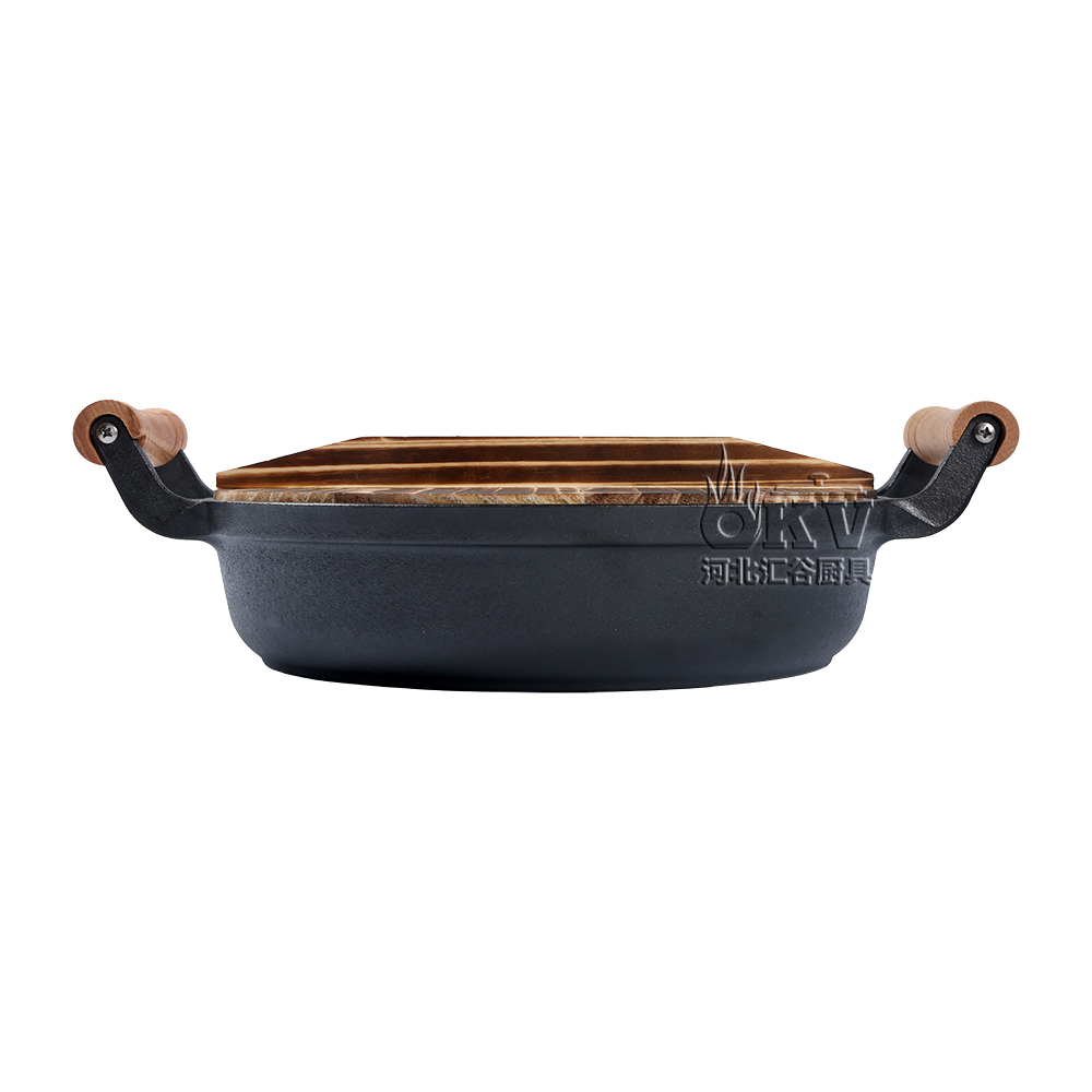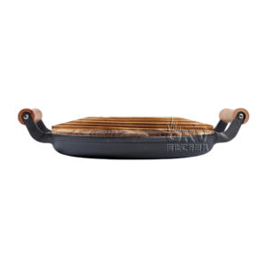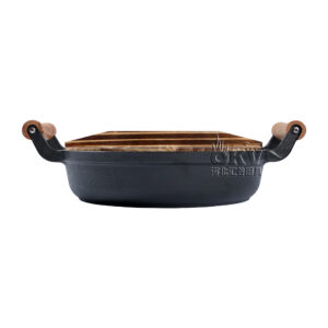 Crafted from durable cast iron and pre-seasoned with natural vegetable oil, these pans offer superior heat retention and even cooking across all heat sources. The double wooden handles ensure a secure grip and a rustic aesthetic, while the fitted wooden lids enhance flavor by sealing in moisture and aroma.