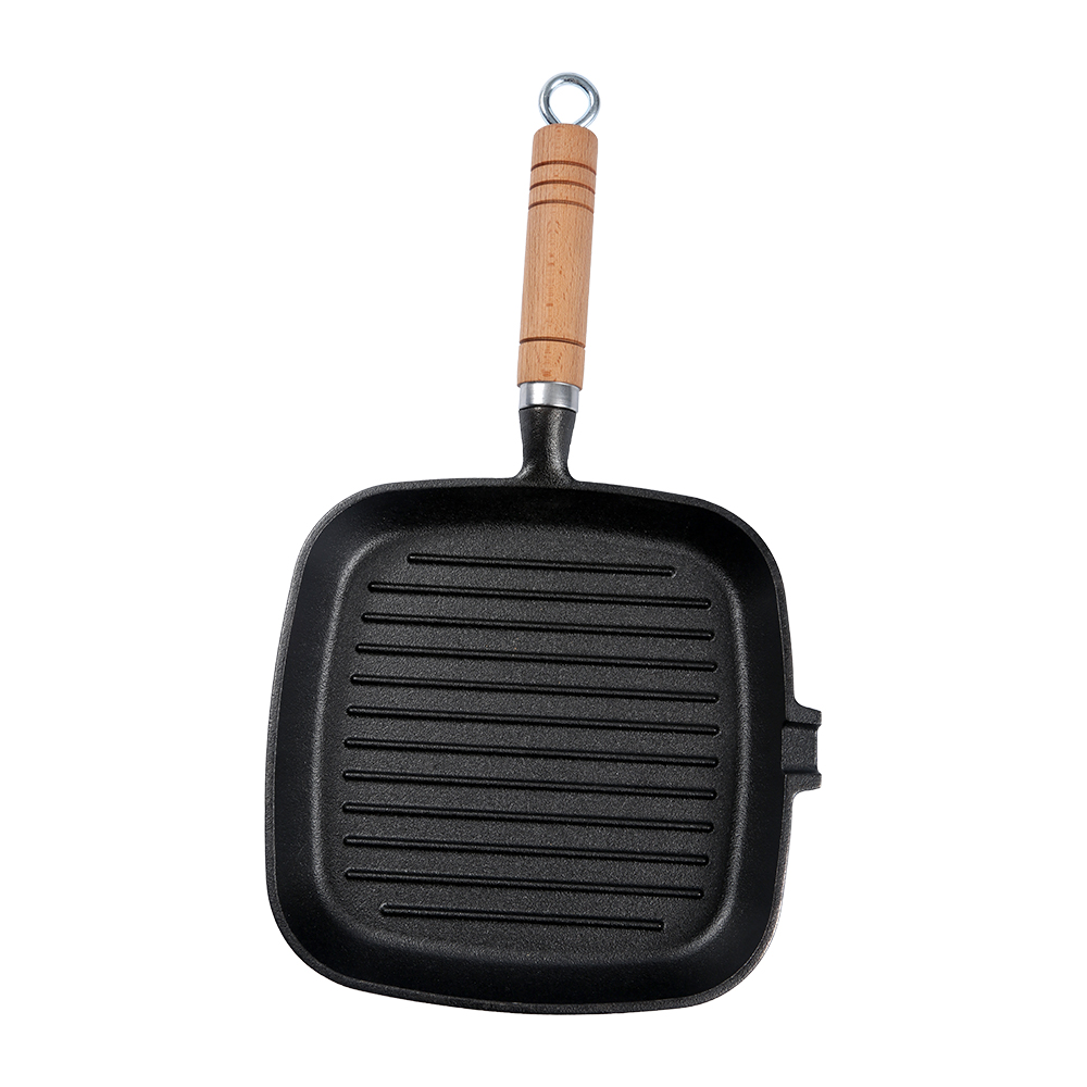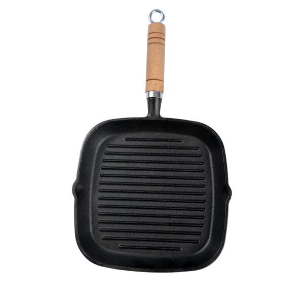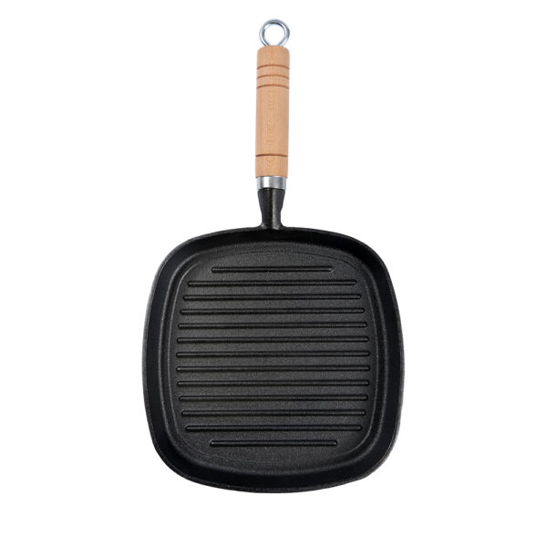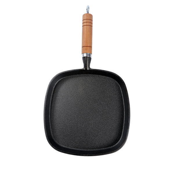 The durable wooden handle provides a comfortable grip and stays cool while cooking, while the integrated hanging loop offers convenient storage. Its square design maximizes surface area—perfect for searing steak, grilling veggies, or toasting sandwiches.