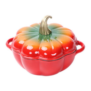 Perfect for slow cooking, roasting, baking, and even table presentation. The heavy lid helps lock in heat and moisture for tender, flavorful meals. This model supports customization, including unique pumpkin stem-shaped or leaf-inspired knobs, offering both practicality and visual charm.