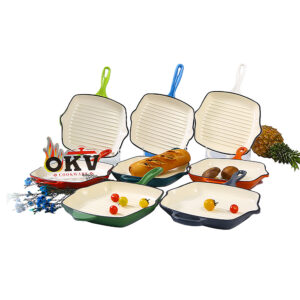 Upgrade your grilling game with our Colorful Enamel Cast Iron Grill Pan, a fusion of high performance and bold kitchen style. This 26cm (10.2″) square skillet is designed with deep grill ridges and a vibrant, glossy enamel coating to sear meats, vegetables, and sandwiches to perfection—indoors or out.