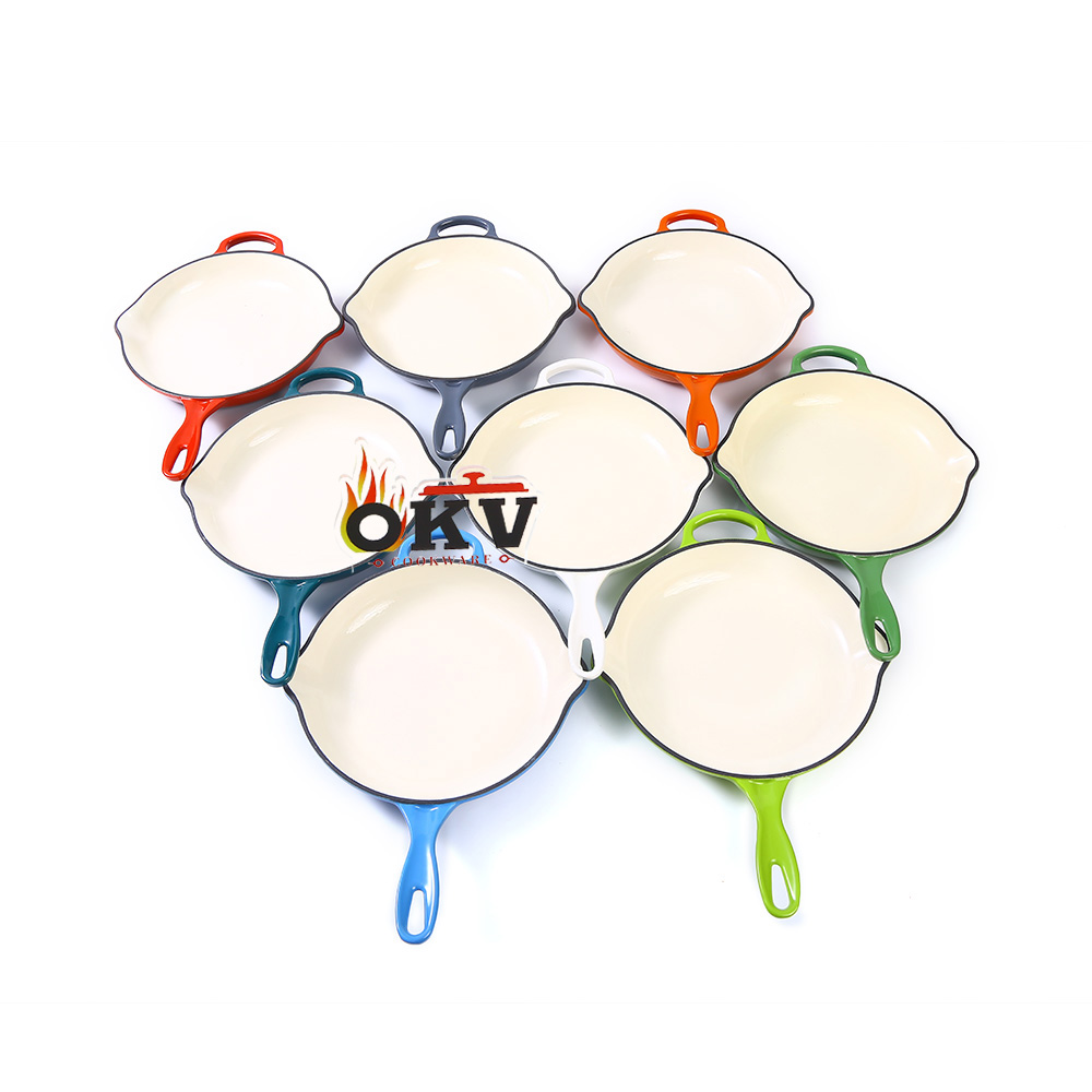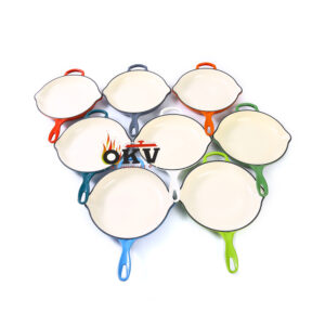 Brighten your kitchen and elevate your cooking with our Colorful Enamel Cast Iron Skillet – where timeless performance meets modern style. This 25cm enameled frying pan is crafted from heavy-duty cast iron and finished with a durable, glossy enamel coating in a range of vibrant colors to match your kitchen personality.