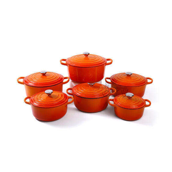 Crafted from durable cast iron and finished with a high-quality enamel coating, it retains heat beautifully for slow-simmered stews, hearty soups, braised meats, and oven bakes. The snug-fitting lid locks in moisture and flavor for tender, delicious results every time.