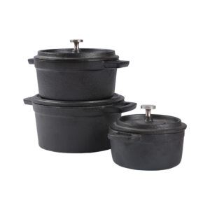 This 3-piece Mini Cast Iron Pot Set brings timeless cast iron craftsmanship to small-scale cooking. Each pot—sized at 10CM, 13CM, and 14CM—is pre-seasoned with 100% natural vegetable oil, creating a chemical-free, non-stick surface that improves with every use.