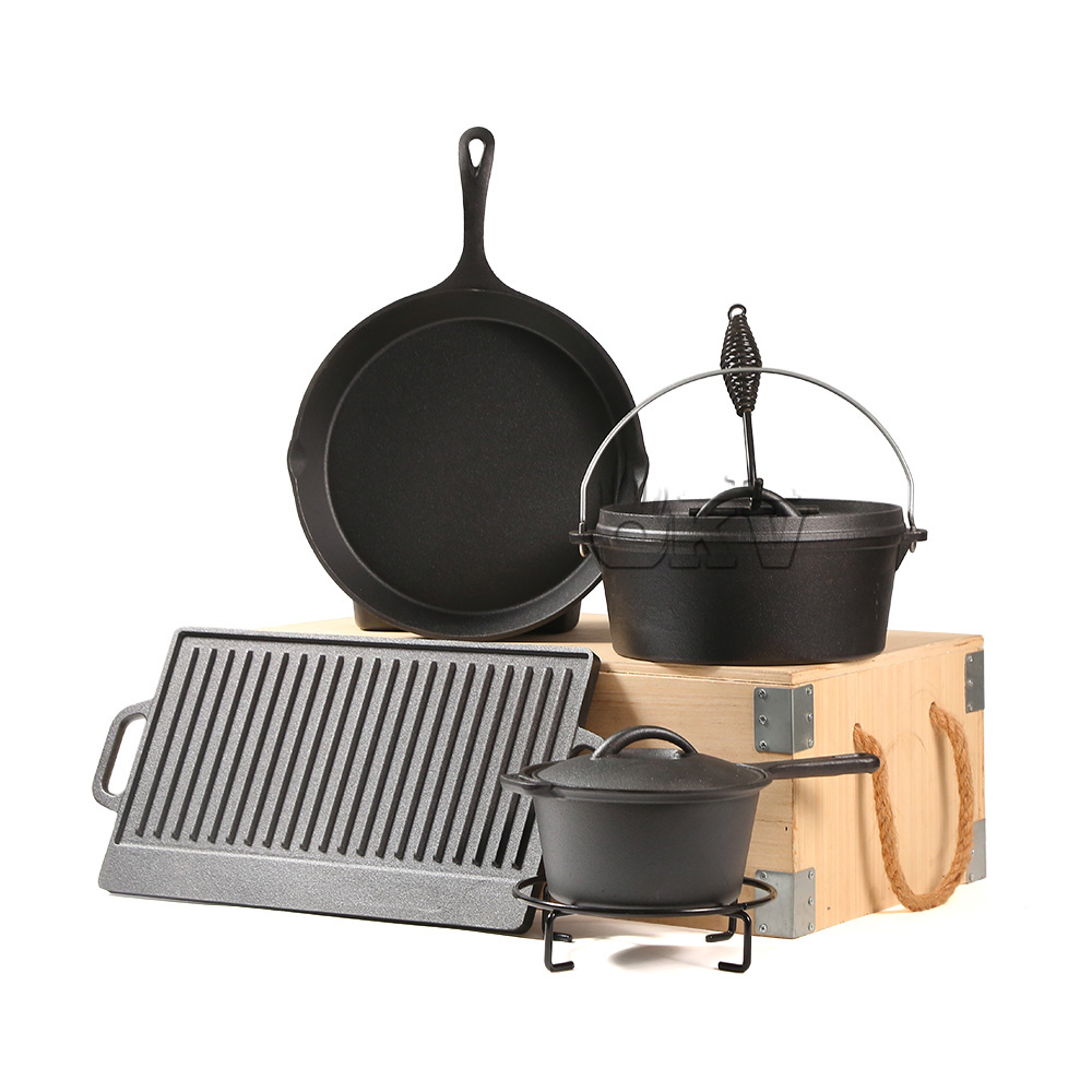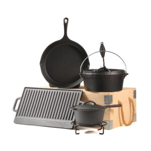 Each piece is made from high-quality pre-seasoned cast iron, offering unbeatable heat retention and even cooking. From frying and stewing to baking and boiling, this all-in-one set brings versatility and durability wherever your adventure takes you.